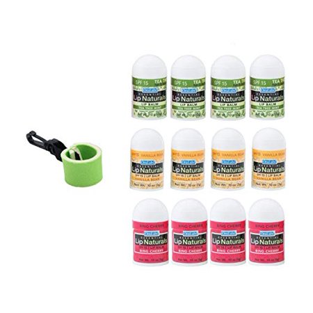 Essential Lip Naturals Mini Lip Balm Assorted Flavors12 Ct With 1 Mini Neoprene Sleeve Lip Balm Holder With Swivel Clip 13 Total Items