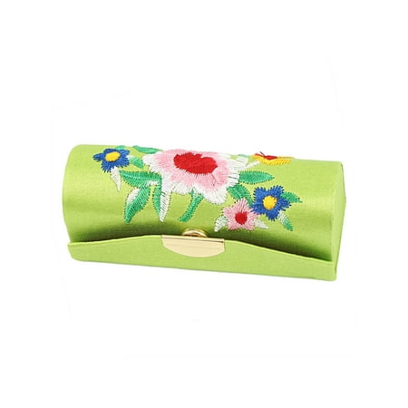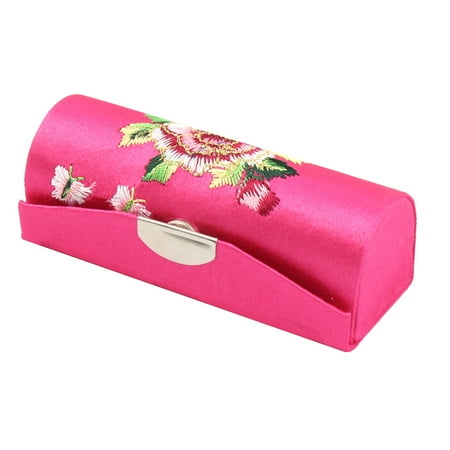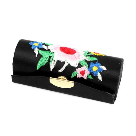 Unique Bargains Lady Flower Embroidery Press Stud Lipstick Lip Balm Stick Case Box Holder Black