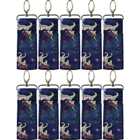 Birdz 10 Unicorn Patterned Material Lip Balm Holsters Lipstick Holders Metal Clip
