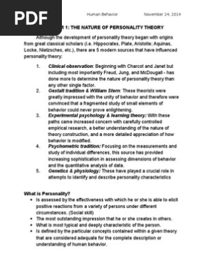 Human Behav Ch 1 Nature Of Personality Personality Psychology